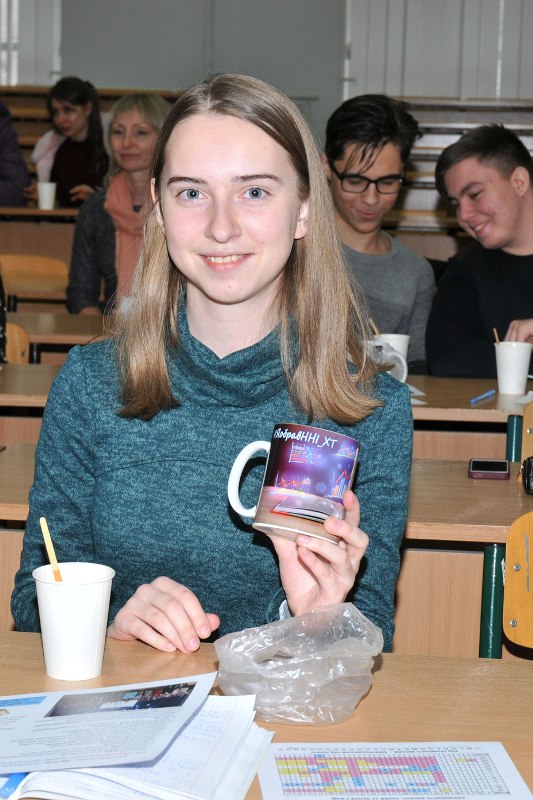 Після чаювання доценти кафедри харчової хімії Наталія Сімурова та Інна Попова провели цікаву хімічну вікторину для абітурієнтів. Переможці змагання отримали призи від дирекції Навчально-наукового інституту харчових технологій, що стануть щасливими талісманами та нагадуванням про наш університет.