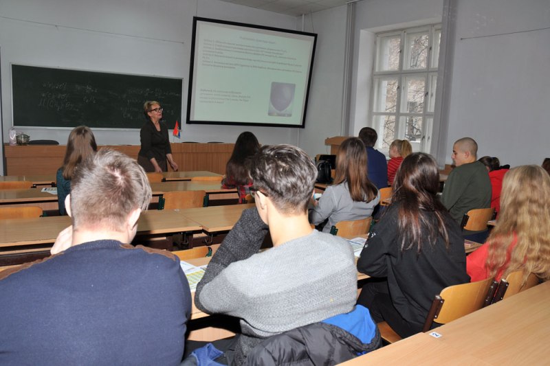 Роботу лекторію розпочала доцент кафедри харчової хімії Віра Іщенко, яка розглянула разом із абітурієнтами завдання ЗНО з хімії та способи їх розв’язання, типові труднощі та помилки при вирішенні хімічних задач. Наш викладач вичерпно відповіла на запитання школярів стосовно успішного складання тесту.