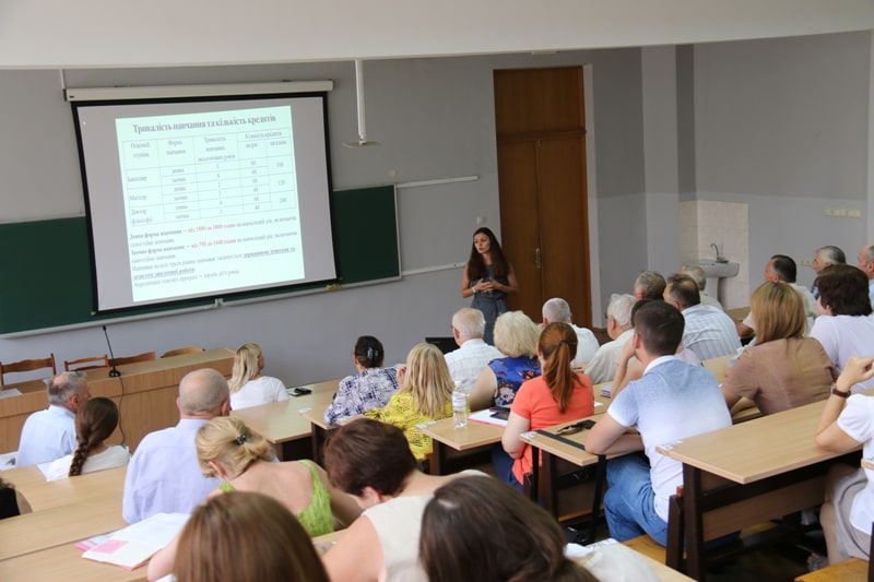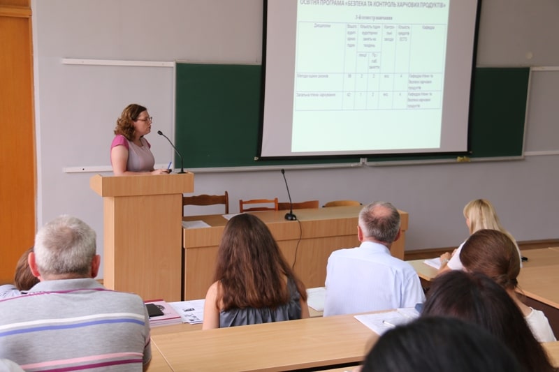 Першим розглянули звіт об’єднаної делегації кафедр технології хлібопекарських і кондитерських виробів і експертизи харчових продуктів, яка вивчала досвід Словацького сільськогосподарського університету у м. Нітра. З ґрунтовною доповіддю по цьому питанню виступили завідувач кафедри технології хлібопекарських і кондитерських виробів Володимир Ковбаса, доцент цієї ж кафедри Інна Зінченко і доцент кафедри експертизи харчових продуктів Оксана Петруша. Університет у м. Нітра – єдиний у Словаччині з підготовки фахівців із харчових технологій, він займає 3 місце за рейтингом вишів країни й у ньому навчається близько 10 тисяч студентів. Наші стажери докладно ознайомилися зі спорідненими освітніми програмами навчального закладу – «Виробництво агропродуктів» і «Безпека та контроль харчових продуктів», академічним календарем, тривалістю навчання та кількістю кредитів, навчальними планами, програмами дисциплін, організацією контролю знань студентів, напрямками наукових досліджень. Підсумовуючи свою доповідь, вони навели перспективи використання отриманого досвіду у нашому університеті.