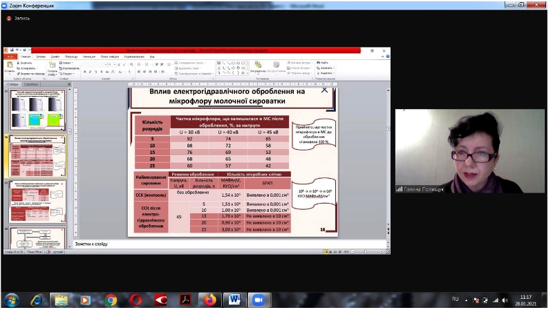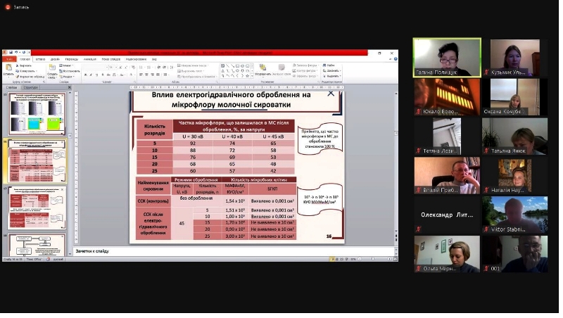 28 січня 2021 р. на кафедрі технології молока і молочних продуктів відбувся попередній розгляд дисертаційної роботи «Наукове обґрунтування електрофізичних способів оброблення молочної сироватки та їх використання в технологіях молочних продуктів» доцентки Оксани Кочубей-Литвиненко на здобуття наукового ступеня доктора технічних наук.