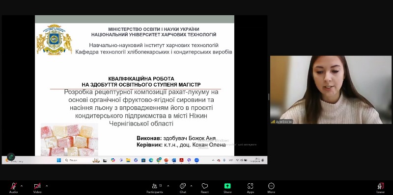 На кафедрі технології хлібопекарських і кондитерських виробів відбувся захист магістерських кваліфікаційних робіт здобувачів освітньо-професійної програми «Технології органічних харчових продуктів».
