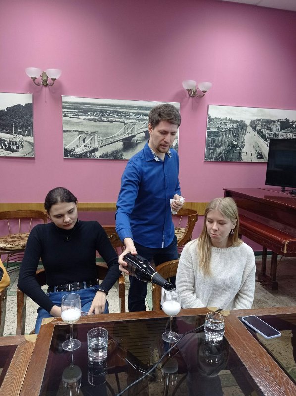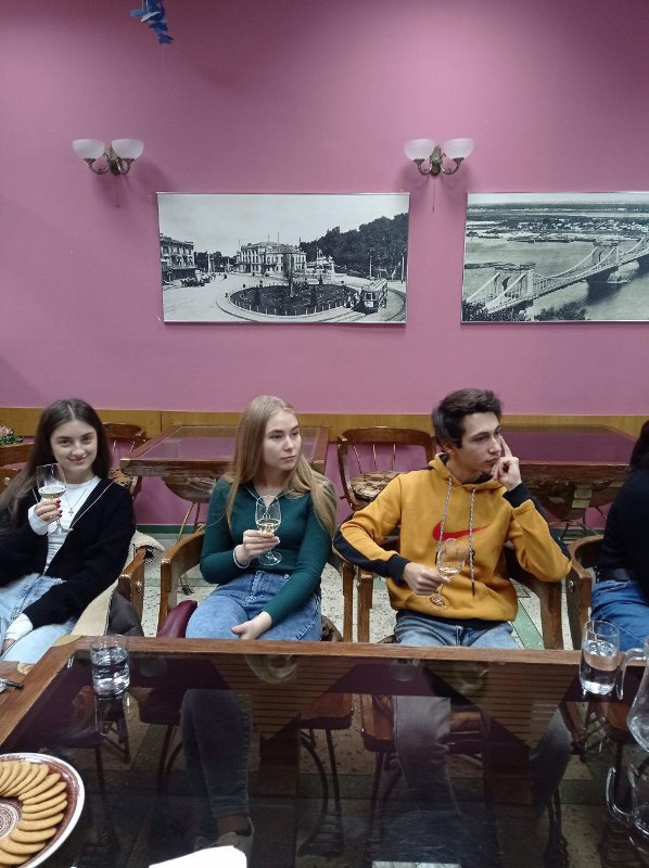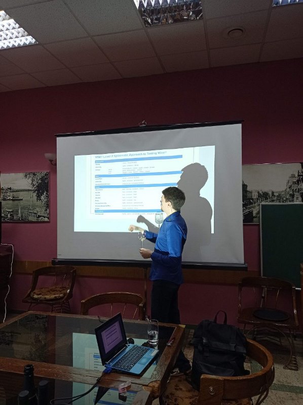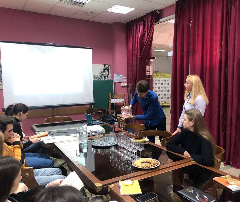 На початку зустрічі запрошений гість-сомельє розповів про особливості теруару різних куточків України, найвідоміші виноробні та найтоповіші пропозиції вин, а далі перейшли до ознайомлення з основними принципами роботи сомельє та закріпили знання проведенням дегустації вітчизняних вин.