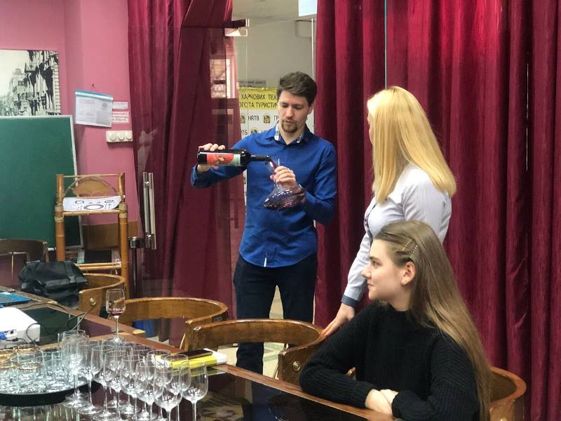 На кафедрі готельно-ресторанної справи в рамках вивчення дисципліни «Барна справа та організація роботи сомельє» відбувся воркшоп-дегустація локальних вин для здобувачів освіти 3 курсу спеціальності 241 «Готельно-ресторанна справа» від професійного сомельє елітного ресторану Catch Seafood Restaurant Ігоря Постоянкіна.