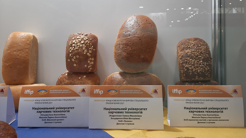 Приємно зазначити, що розробки викладачів та аспірантів кафедри технології хлібопекарських і кондитерських виробів здобули найвищі нагороди Конкурсу – дипломи І та ІІ ступенів у номінації «Кращі хлібобулочні вироби спеціального призначення 2021», а їх автори – відзначені подяками Всеукраїнської асоціації пекарів.