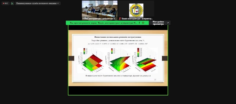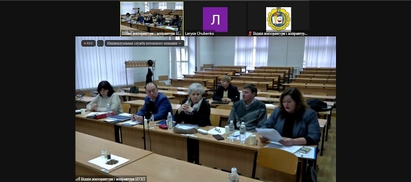 Зазначимо, що вперше за довгий час захист відбувся в університеті, в очному форматі з трансляцією онлайн у режимі реального часу. Разову спеціалізовану вчену раду з розгляду дисертації очолила докторка технічних наук, професорка кафедри технології цукру і підготовки води Наталія Гусятинська. У складі ради працювали рецензенти – докторка технічних наук, професорка, завідувачка кафедри технології жирів, хімічних технологій харчових добавок та косметичних засобів Тамара Носенко і кандидат технічних наук, старший науковий співробітник, завідувач Проблемної науково-дослідної лабораторії Андрій Маринін та опоненти – доктор технічних наук, професор кафедри процесів і обладнання переробки продукції АПК Національного університету біоресурсів і природокористування України Ігор Паламарчук і докторка технічних наук, доцентка, завідувачка кафедри харчових технологій та мікробіології Вінницького національного аграрного університету Ірина Берник.