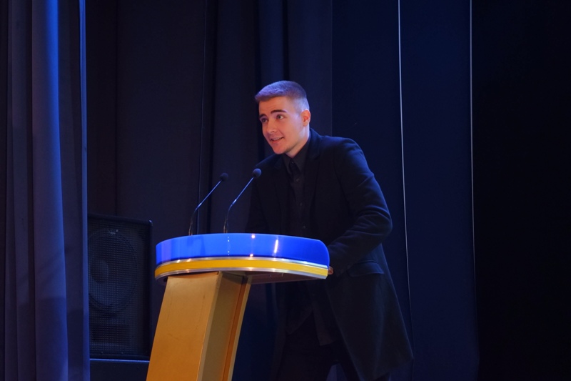 Своїм студентським досвідом поділилися й привітали першачків у студентській родині НУХТ заступник голови студентської ради університету Станіслав Усенко й випускник університету, голова студентської ради НУХТ у 2018-2021 роках Олександр Висоцький.