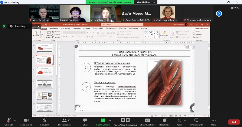 3-7 квітня 2023 р. у форматі відеоконференції відбулася підсумкова науково-практична конференція ІІ туру Всеукраїнського конкурсу студентських наукових робіт за спеціальністю «Харчові технології» 2022-2023 н.р.