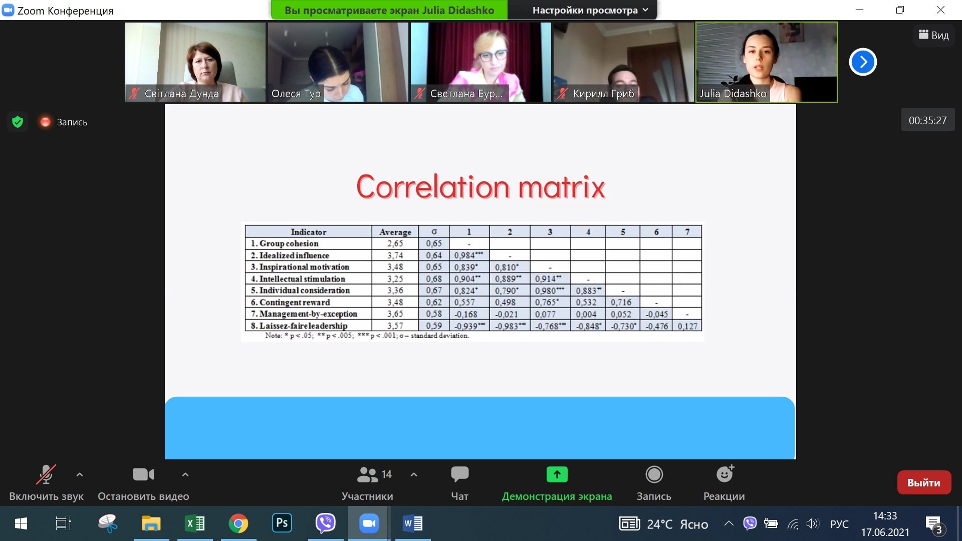 Екзаменаційна комісія у складі професорки, завідувачки кафедри Тамари Березянко (голова), професорки Світлани Бурлуцької, доценток Вікторії Москаленко і Олесі Тур (секретар ЕК) оцінила рівень досягнення програмних результатів освітньо-професійної програми та ступінь здобутих компетентностей. На захисті також були присутні викладачки кафедри, доценка Тетяна Рибачук-Ярова і гарантка освітньо-професійної програми «Менеджмент», доцентка Світлана Дунда.