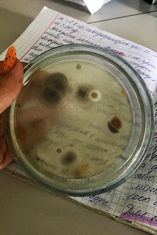 Наприкінці травня студенти групи ТІ-2-6 під керівництвом доцента кафедри біотехнології і мікробіології Світлани Тетеріної у рамках вивчення дисципліни «Мікробіологія для харчових технологій» розпочали дослідження мікробіологічної забрудненості об’єктів навколишнього середовища. Вони зробили посіви повітря лекційних аудиторій, холу, підвалу, туалету, водопровідної води та ґрунту, що власноруч відбирали за всіма офіційними вимогами відбору зразків біля студентської їдальні, а також посів мікрофлори людини. Далі юні дослідники терпляче чекали на результат. І ось, нарешті, зі впевненістю, що з’явилася у них в результаті ґрунтовного теоретичного опанування дисципліни й здобуття практичних навичок, майбутні експерти представляють результати.