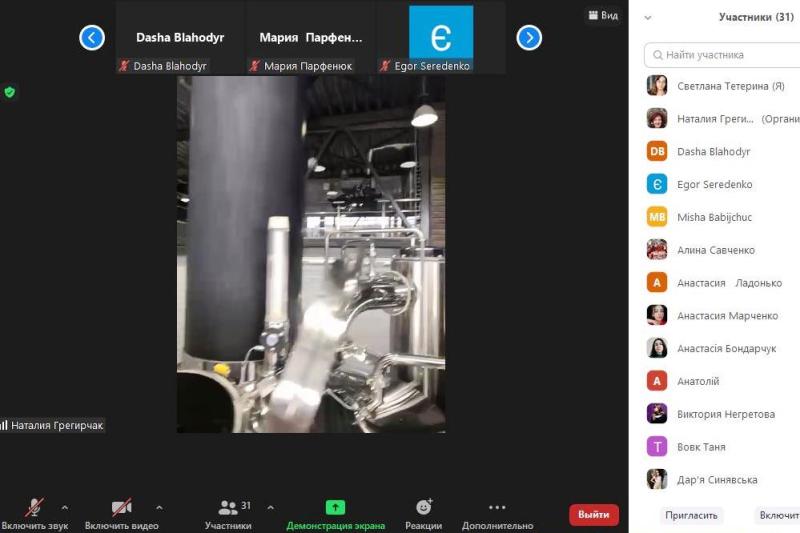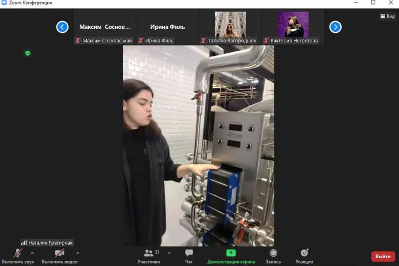 Онлайн-навчання у цей вкрай непростий для нашої України час залишається чи не єдиним можливим способом не перервати підготовку висококласних фахівців так потрібних нашій Батьківщині. Не зважаючи на такий суттєвий недолік дистанційної освіти як відсутність безпосереднього контакту між учасниками освітнього процесу, вона все ж має і ряд переваг. Зокрема це і можливість залучити різні неформальні технології навчання, серед яких і цікаві, змістовні онлайн-екскурсії. Ось і деканка факультету біотехнології та екологічного контролю Наталія Грегірчак організувала екскурсію гуцульською крафтовою пивоварнею «Ципа», до якої долучилися здобувачі та викладачі кафедри біотехнології і мікробіології та кафедри біотехнології продуктів бродіння і виноробства.