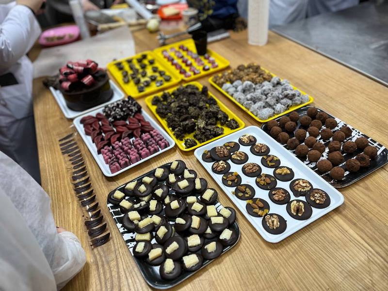 Учасники майстер-класу ознайомилися з тонкощами темперування шоколаду та навчилися правильно підбирати і використовувати інструменти для роботи з ним; дізналися про особливості поєднання текстур при виготовлені шоколадних цукерок і секрети роботи з барвниками для шоколаду; познайомилися з особливістю роботи з трансферами. Розглянули різновиди шоколадного декору, отримали практичні навички по виготовленню корпусних цукерок із використанням полікарбонатних форм та особливостями виготовлення цукерок із рідкою алкогольною начинкою, хрустких цукерок, медальйонів із горішками, формових цукерок із ганашем.
