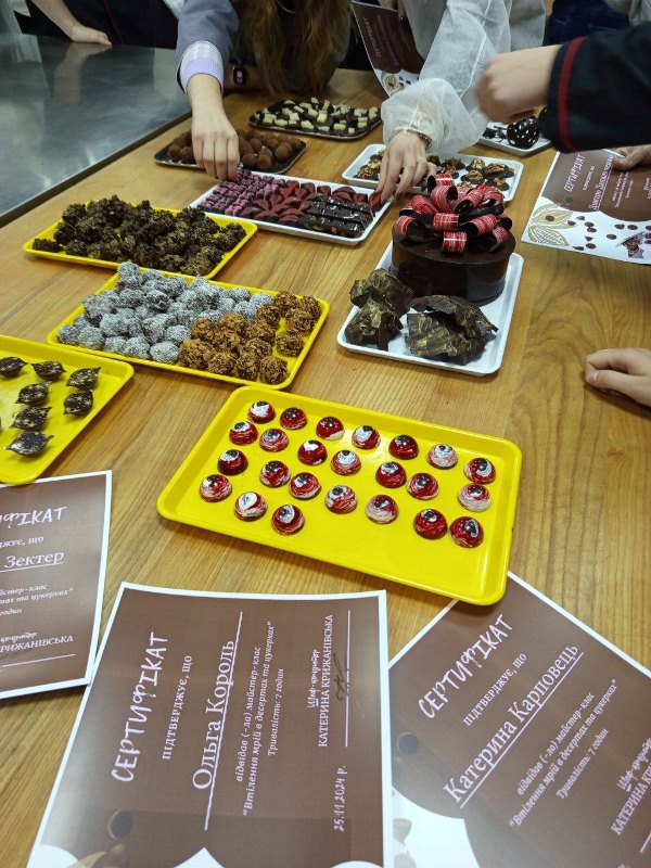 У важкі часи надважлива підтримка однодумців і колег! Національний університет харчових технологій і Державний біотехнологічний університет (м. Харків), за ініціативи організаторки кулінарних шоу Тетяни Захарченко виступили співорганізаторами великого майстер-класу «Втілення мрій у шоколадних десертах і цукерках».