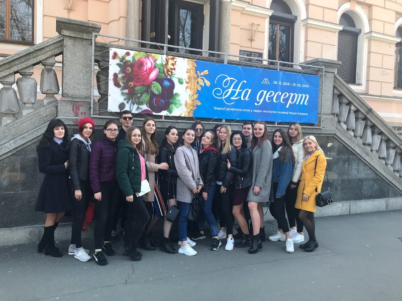 Першокурсники спеціальності 241 «Готельно-ресторанна справа» в рамках навчальної дисципліни «Ресторанна справа» разом із лектором Вітою Цирульніковою і викладачами Оленою Блощинською та Інгою Дочинець відвідали Музей Ханенків, зокрема виставку «На десерт», присвячену вишуканим традиціям споживання солодощів і десертних напоїв у 18-19 ст.