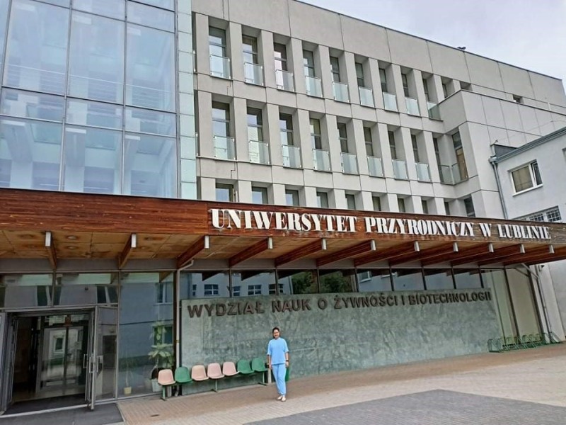 З 1 по 31 липня 2022 р. аспірантка кафедри технології молока і молочних продуктів Вікторія Сапіга, яка здобуває освітній ступінь «Доктор філософії» за спеціальністю 181 «Харчові технології» (керівниця – професорка Галина Поліщук), пройшла наукове стажування в Університеті природничих наук в Любліні на запрошення члена комісії харчових наук Польської академії наук, професора Станіслава Млеко та професорки Марти Томчинської-Млеко, з якими співробітники кафедри підтримують творчі стосунки протягом кількох років.