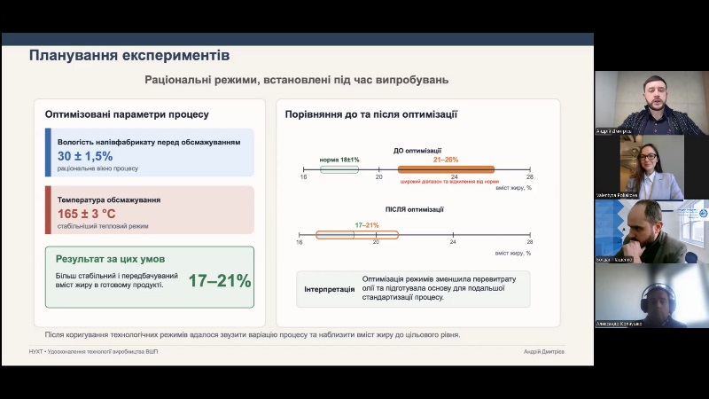 четвертокурсниця бакалаврату освітньої програми «Технологічна експертиза та безпека харчової продукції» Анна Шарига з доповіддю «Впровадження філософії Kaizen на виробничих потужностях, як інструмент підвищення ефективності виробництва та контролю якості продукції»