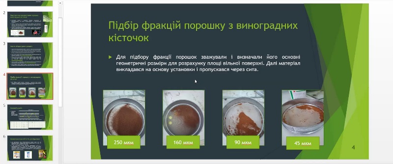 ІІІ місце – четвертокурсниця бакалаврату освітньої програми «Технологічна експертиза та безпека харчової продукції» Анна Дев’яткіна з доповіддю «Залежність вмісту акриламіду в картоплі фрі від температури обсмаження та сорту картоплі»;