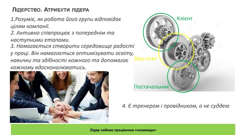 Коротким узагальненням зустрічі з Віталієм Іванесом з питань лідерства може бути вислів Євгена Ковніра: «Аби запалювати інших – потрібно горіти самому». Віталій поділився власним практичним досвідом із реалізації принципу «Лідерство» і найбільш ефективними заходами щодо залучення та мотивації персоналу, формування цілісної команди, об’єднаної загальною ідеєю. Присутні на зустрічі активно обговорювали проблемні питання, пов’язані із залученістю керівництва компанії до змін, ділилися кращими ідеями мотивації працівників та їх зацікавленості у впровадженні принципів ощадливого виробництва.