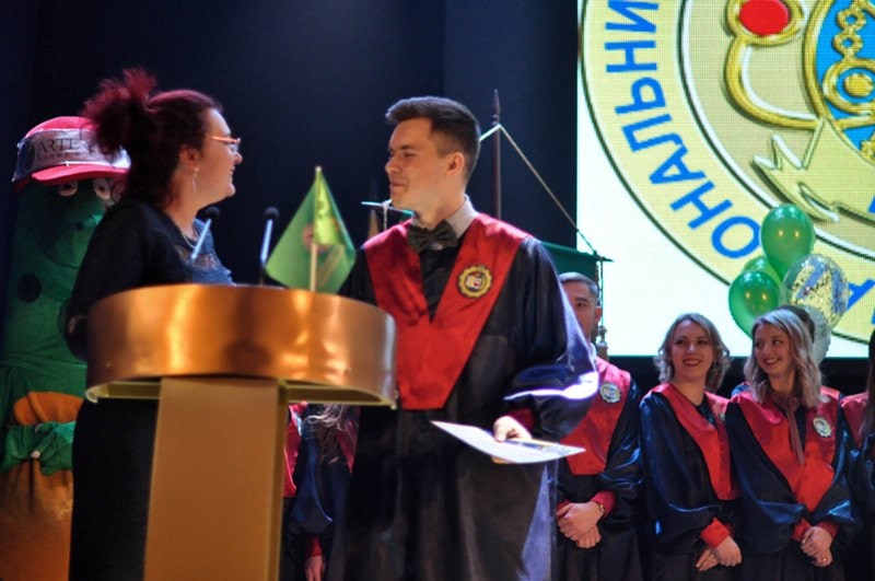 Наказ ректора про присвоєння освітньо-кваліфікаційного рівня «бакалавр» і освітнього ступеня «магістр» оголосили декан Наталія Грегірчак і заступник декана з навчально-виховної роботи Юрій Резніченко. Вони ж вручили найкращим студентам грамоти за особисті наукові здобутки, активну участь у спортивному й культурно-масовому житті факультету. Оригінальними подарунками були відзначені Марина Коваль – голова студентської ради факультету та Володимир Федоренко – голова студентської ради гуртожитку № 3.