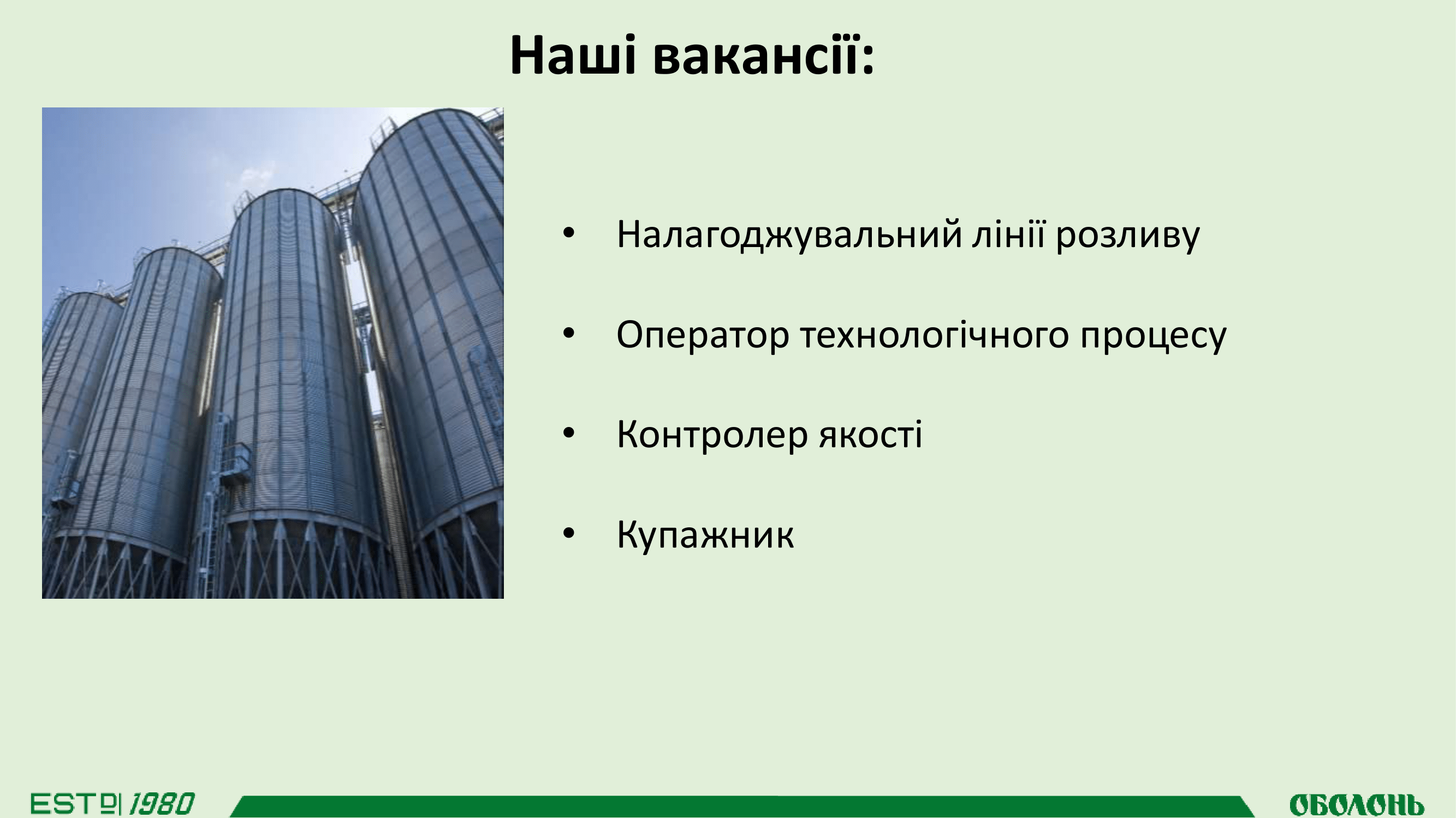 - Постійну, стабільну, гарантовану роботу на сучасному підприємстві