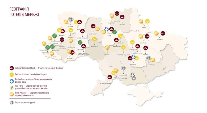 Бренди мережі: Optima Collection Hotel, Optima Hotel, Vita Park, Raziotel.