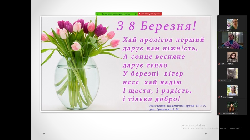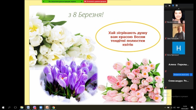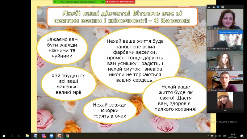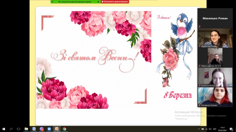 Наставниці підготували листівки-вітання для дівчаток груп і привітали їх зі святом. Листівки та вірші з привітаннями також підготували студенти, та прочитали їх під час онлайн-зустрічей.