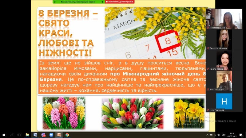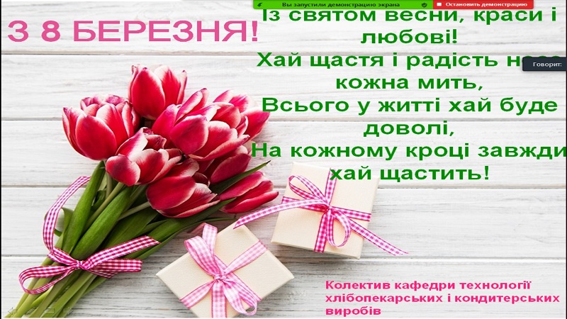 До свята 8 Березня наставниці академічних груп, доцентки кафедри технології хлібопекарських і кондитерських виробів Юлія Бондаренко, Анна Грищенко, Лариса Михонік та Олена Кохан провели тематичний захід.