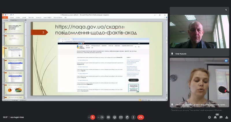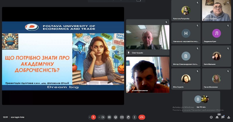 Учасники заходу активно обговорювали важливі принципи наукової доброчесності та етичні аспекти у проведенні наукових досліджень. Модерував вебінар старший викладач кафедри менеджменту ім. І.А. Маркіної ПДАУ Микола Вовк.