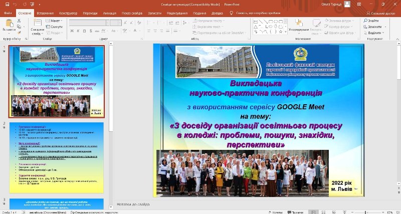 У коледжі відбулася викладацька науково-практична конференція з використанням сервісу Google Meet «З досвіду організації освітнього процесу в коледжі: проблеми, пошуки, знахідки, перспективи».