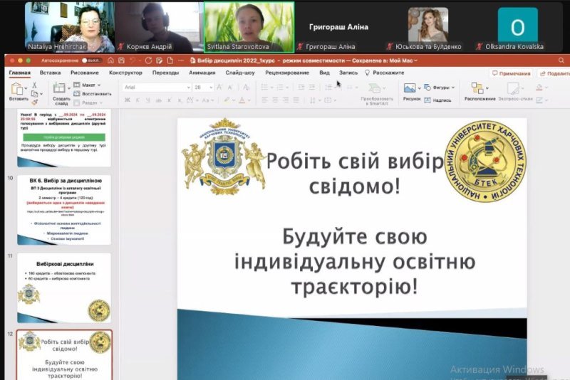 Світлана Старовойтова закликала першокурсників свідомо підійти до вибору навчальних дисциплін зі врахуванням особистого кола професійних інтересів для подальшої реалізації гнучких індивідуальних траєкторій навчання.