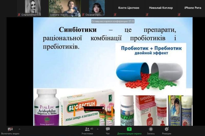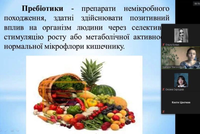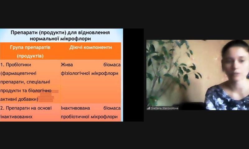 З підготовленої лекторкою мультимедійної презентації здобувачі дізналися не лише про класичні імунобіологічні препарати для корекції та відновлення мікробіоти (про-, пре- синбіотики), а й про найсучасніші різновиди бактеріотерапевтичних препаратів збагачених пробіотичними мікроорганізмами (ко-, мета-, психо- та імунобіотики). Навчилися розрізняти поняття «пробіотик» і «функціональний продукт харчування збагачений пробіотичними мікроорганізмами». Розглянули препарати пробіотичного ряду різних поколінь та їх особливості.