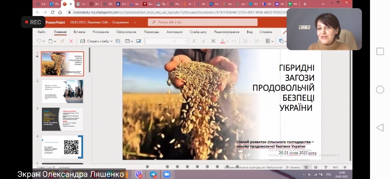 20 січня 2022 року викладачка кафедри технології ресторанної і аюрведичної продукції Людмила Дейниченко взяла участь у Міжнародній науково-практичній конференції «Сталий розвиток сільського господарства – основа продовольчої безпеки України», що проводилася в межах проєкту ЄС Програми Еразмус+ напряму Жан Моне під егідою громадської організації «Регіональний центр європейських освітньо-наукових ініціатив».
