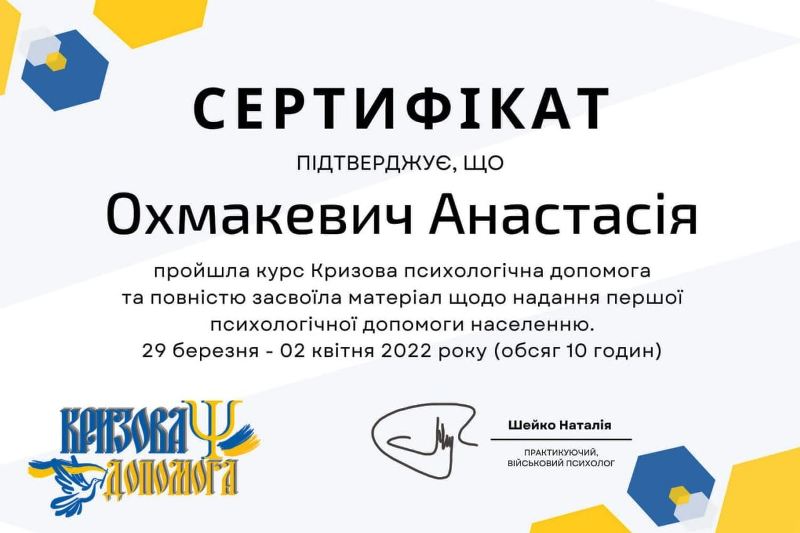 Наші здобувачі вдячні Наталії Шейко за змістовний, потрібний і цікавий курс «Кризова психологічна допомога» і рекомендують його пройти всім.