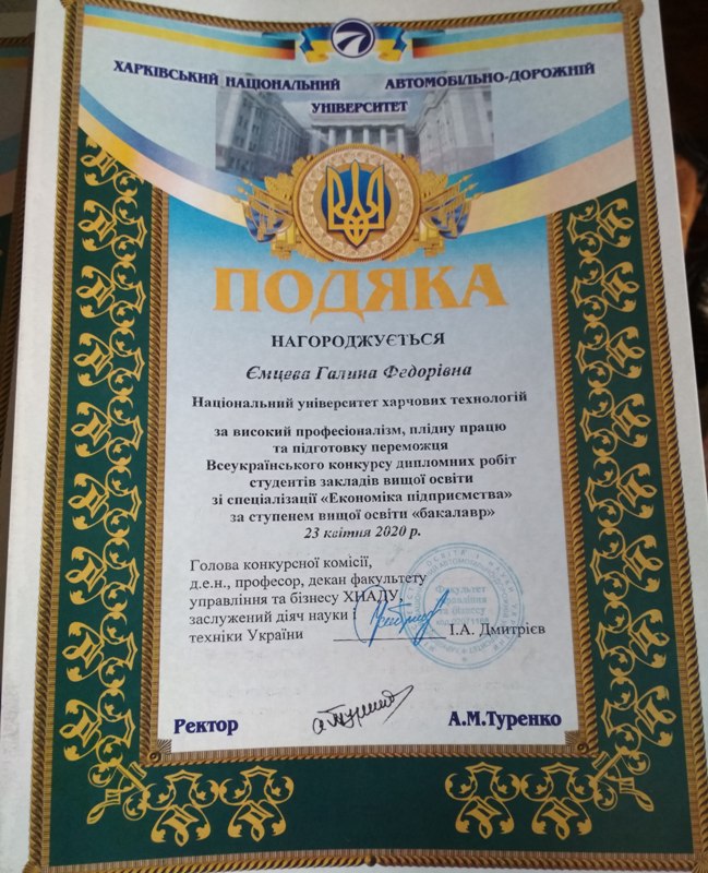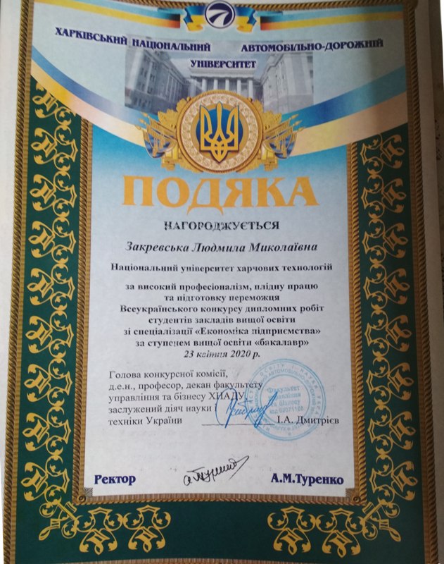Студенти та викладачі кафедри економіки і права взяли участь у Всеукраїнському конкурсі дипломних робіт зі спеціальності «Економіка підприємства» за ступенем вищої освіти «бакалавр», який відбувся наприкінці квітня на базі Харківського національного автомобільного-дорожнього університету дистанційно.