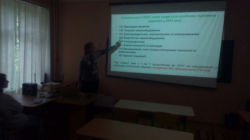 Зустріч пройшла в дружній атмосфері. Учні слухали та задавали запитання про структурні підрозділи НУХТ, спеціальності, організацію студентського дозвілля. Обговорили переваги навчання на різних факультетах в нашому університеті, подальше працевлаштування та можливості поєднання роботи і навчання. Викладачі надали докладну інформацію про нюанси вступу у 2024 році та роз’яснили, при вступі на які спеціальності надається особлива підтримка держави.