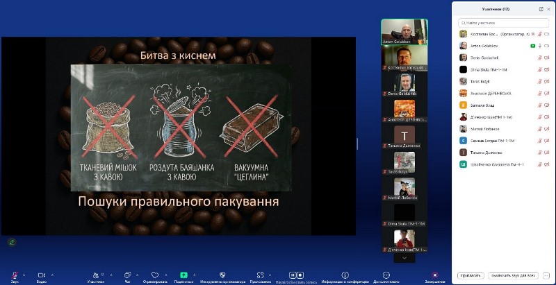 Шлях кави від зерна до чашки дослідили здобувачі освітньо-професійних програм «Прикладна механіка» та «Робототехнічні комплекси пакувальних виробництв» (спеціальність G9 «Прикладна механіка») і викладачі кафедри мехатроніки та пакувальної техніки на гостьовій лекції стейкхолдера, бренд-менеджера ТОВ «ЕСПРЕСІОНІСТИ ПАРТНЕРШІП» (Coffeemachines.PRO) Антона Голубкова, занурившись разом із фахівцем у світ кави і упаковки.