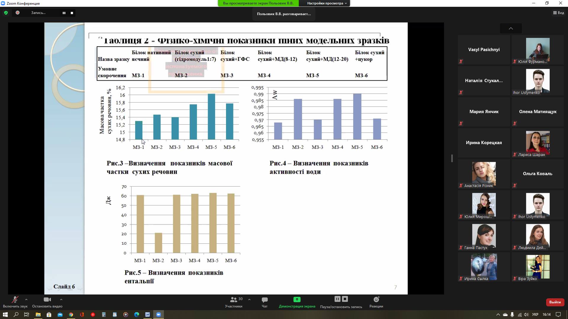 До обговорення представлених результатів досліджень долучилися науковці кафедр технології оздоровчих продуктів, технології м’яса і м’ясних продуктів, технології хлібопекарських і кондитерських виробів, експертизи харчових продуктів, технології ресторанної і аюрведичної продукції, готельно-ресторанної справи, технології жирів, хімічних технологій харчових добавок та косметичних засобів. Вони відзначили актуальність теми, ґрунтовне пропрацювання здобувачем ключових моментів, практичну цінність досягнутих результатів. Отримавши докладні відповіді на свої запитання, учасники семінару надали науковцеві свої зауваження й прийняли рішення після усунення незначних недоліків рекомендувати дисертаційне дослідження Володимира Польовика до захисту у спеціалізованій вченій раді.