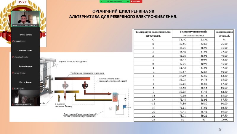 Здобувач ступеня «доктор філософії» виступив із доповіддю «Органічний цикл Ренкіна як альтернатива для резервного електроживлення». Тематика та матеріал доповіді отримали схвальні відгуки присутніх науковців і викликали жваву дискусію.