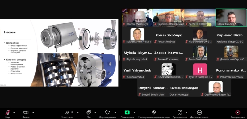 У ході своєї педагогічної практики аспірант кафедри технологічного обладнання та комп’ютерних технологій проєктування Віталій Околіта, що працює на ДП «Альфа Лаваль Україна», долучився до проведення лекційного заняття з дисципліни «Високоефективні процеси і обладнання галузі» для своїх колег-здобувачів освітнього ступеня «Доктор філософії» освітньо-професійної програми «Машини та апарати харчових, мікробіологічних і фармацевтичних виробництв» та детально розповів все про сучасну номенклатуру обладнання для молочної промисловості.
