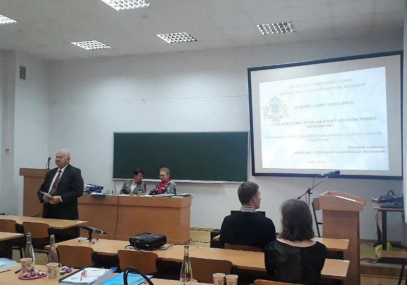 Офіційні опоненти, доктор біологічних наук, професор кафедри харчової біотехнології і хімії Тернопільського національного технічного університету імені Івана Пулюя Володимир Юкало, доктор технічних наук, професор, лауреат Державної премії України в галузі науки і техніки, завідувач кафедри технологій переробки плодів, овочів і молока Харківського державного університету харчування та торгівлі Вікторія Погарська дали позитивні відгуки на дисертаційну роботу та відзначили актуальність теми і високий рівень проведених досліджень.