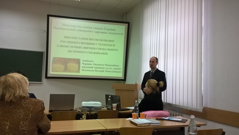Дисертаційна робота «Використання високобілкової рослинної сировини у технології хлібобулочних виробів спеціального дієтичного споживання» виконана під керівництвом доцента кафедри технології хлібопекарських і кондитерських виробів Валерія Махинька.