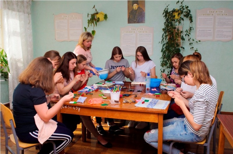 Цього разу засновниця дитячої студії «Равлик», майстриня Людмила Заєць провела для дівчат майстер-клас із виготовлення брошок, навчила їх техніці «мокрого валяння».