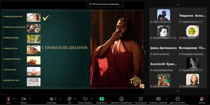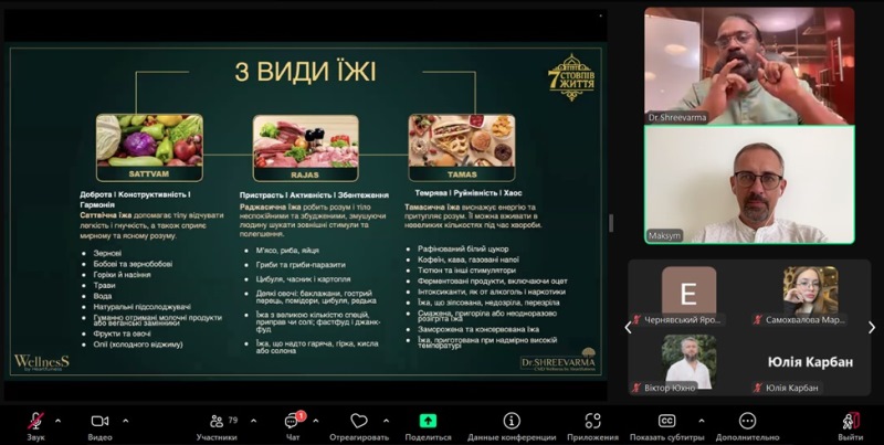 На початку лекції Ачарья Шрі Варма наголосив, що реалізувати свій потенціал у суспільстві може лише людина з гарним здоров’ям, основою якого є сім основних принципів або сім стовпів життя.