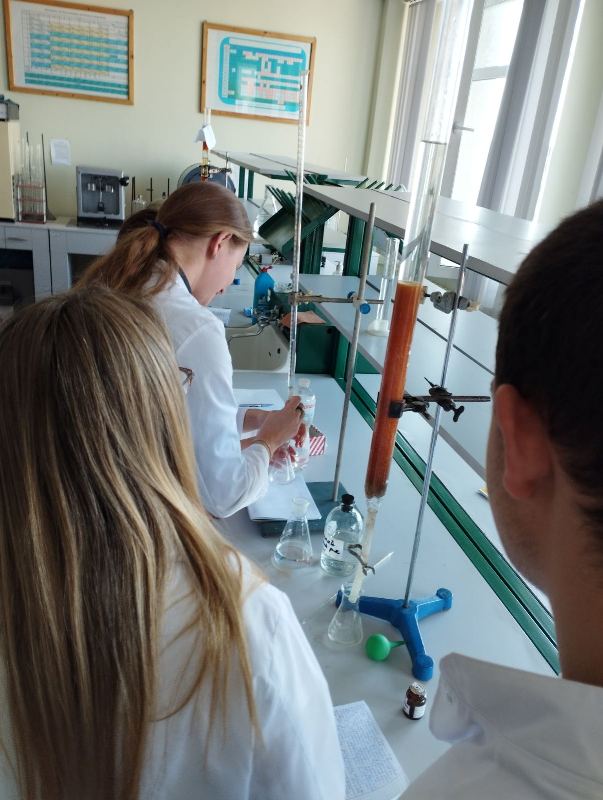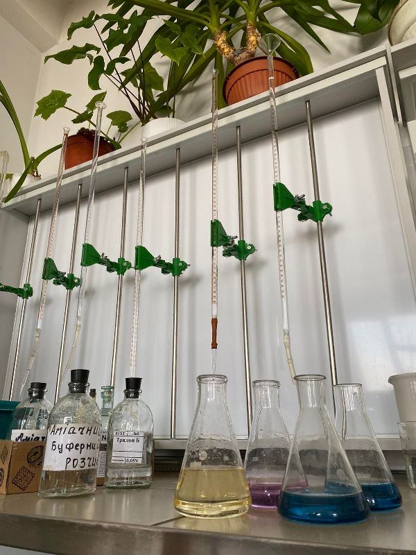 Під час занять з дисципліни «Загальна хімічна технологія» студенти третього курсу переглянули цікавий відеометеріал, підготовлений викладачкою кафедри технології жирів, хімічних технологій харчових добавок та косметичних засобів, доценткою Тетяною Бойчук щодо стану та сучасної технології оброблення води у хімічній та харчовій промисловості, етапи водоочищення та знезараження на ПрАТ «АК «Київводоканал», а також щодо класифікації, синтезу, фізико-хімічних характеристик і роботи іонообмінних смол, що широко застосовуються як у промисловості, так і у домашньому господарстві для очищення води. У лабораторних умовах перевірили титриметричним методом хімічного аналізу основні технологічні показники питної води з різних джерел (бювет, колодязь, водопровід) Києва, Борисполя, Корсунь-Шевченківська, засвоїли іонообмінний та реагентний методи пом’якшення води.