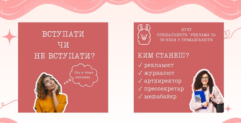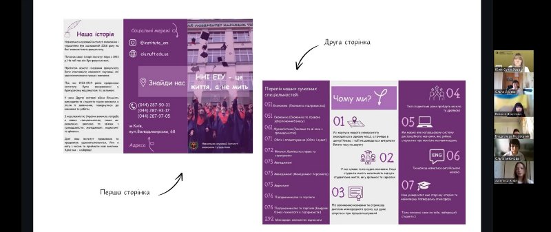 А Юлія Лапутько, Єлизавета Забродська, Євгенія Шеремет та Евеліна Кайнц розробляли кампанії для Навчально-наукового інституту економіки і управління та своєї випускової кафедри маркетингу. Їхні рекламні матеріали, спрямовані на популяризацію спеціальностей кафедри маркетингу й освітньої діяльності НУХТ і залучення вступників, були оригінальними, креативними, ураховували сучасні тренди у соціальних мережах і фірмовий стиль кафедри. Відзначимо, що значна частина створених ними рекламних матеріалів, зокрема, інтернет-реклама та контент для інстаграм-акаунтів, уже знайшла практичне втілення на кафедрі маркетингу.