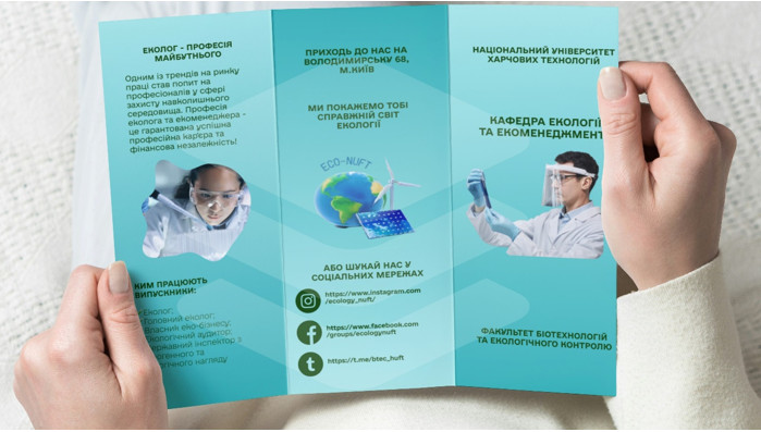 Родзинкою цьогорічних захистів стали кваліфікаційні роботи, присвячені розробленню елементів фірмового стилю та рекламних матеріалів для кафедр нашого університету. Так, здобувачка Дар’я Кривобок створила цілісну кампанію для популяризації діяльності кафедри екології та екоменеджменту НУХТ. Вона виконала масштабну роботу, проаналізувавши побажання замовників і потреби цільової аудиторії, й розробила медіаплан та матеріали для його реалізації.