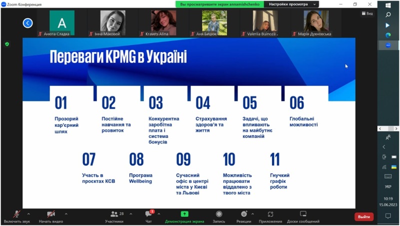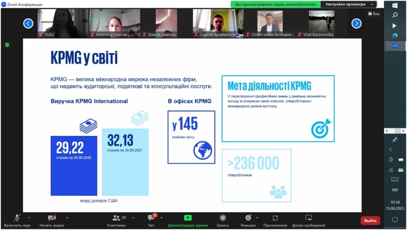 Також кваліфікацію цьогорічних бакалаврів оцінювали фахівці компанії KPMG – міжнародної мережі фірм, що надають аудиторські, податкові, юридичні та консультаційні послуги. В офісах KPMG у 143 країнах світу працюють понад 265000 співробітників. KPMG працює в Україні з 1992 року, і весь цей час основою діяльності було використання світового інтелектуального потенціалу компанії в поєднанні з практичним досвідом українських фахівців для сприяння провідним компаніям у досягненні поставлених перед ними завдань. KPMG уже тривалий час наймає на роботу наших випускників.