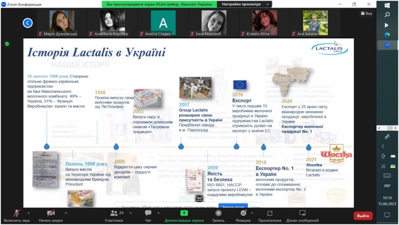Уже традиційно на захистах кваліфікаційних робіт здобувачів освіти були присутні представники роботодавців. Зокрема, Ірина Криницька, начальниця відділу корпоративної звітності компанії «Лакталіс» – французької багатонаціональної корпорації молочних продуктів, що належить родині Безьє та розташована в Лаваль (Майєн, Франція). «Lactalis» є найбільшою групою молочних продуктів у світі та другою за величиною групою харчових продуктів у Франції після «Danone».