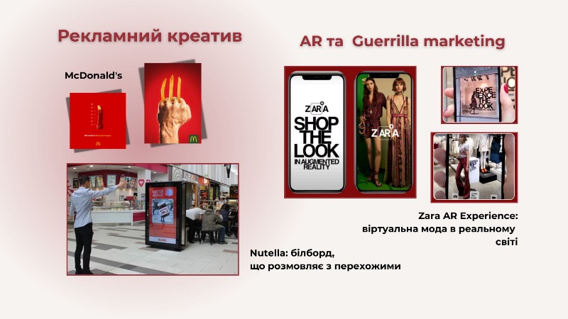 Друга частина «Амбієнтний маркетинг і нативна промоція» – неймовірний креатив, який запалює у клієнтів справжню любов до бренду, була представлена майбутніми маркетологами. «Coca-Cola», «McDonald's», «Starbucks», «Apple», «Samsung» і багато інших брендів уже давно застосовують влучні прийоми, і наші здобувачі дослідили їх досвід.