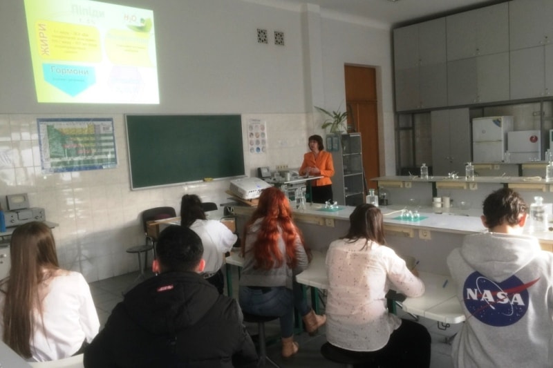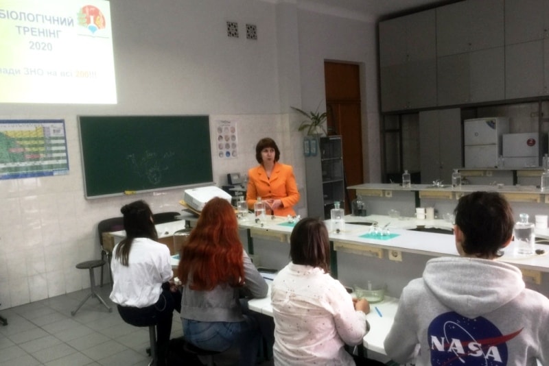 Гостей привітно зустріла доцент кафедри Вікторія Красінько, яка провела для учасників екскурсію лабораторіями кафедри. Після чого розпочався тренінг. Старшокласники розглянули особливості рівнів організації життя і біохімічні складові живої клітини, а також питання, які, зазвичай, є найскладнішими при складанні ЗНО з біології. Учасники перевірили здобуті знання у вигляді тестів і отримали невеличкі подарунки на згадку.