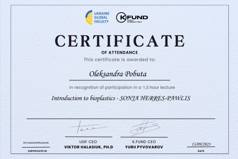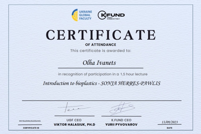 Колектив кафедри біотехнології і мікробіології дуже вдячний професорці Сонії Херрес-Павліс та Ukraine Global Faculty за організацію лекції від світового вченого. Наші здобувачі отримали інформацію, яка сприятиме кращому розумінню проблеми мікропластику та практичним шляхам зменшення його негативного впливу на довкілля.